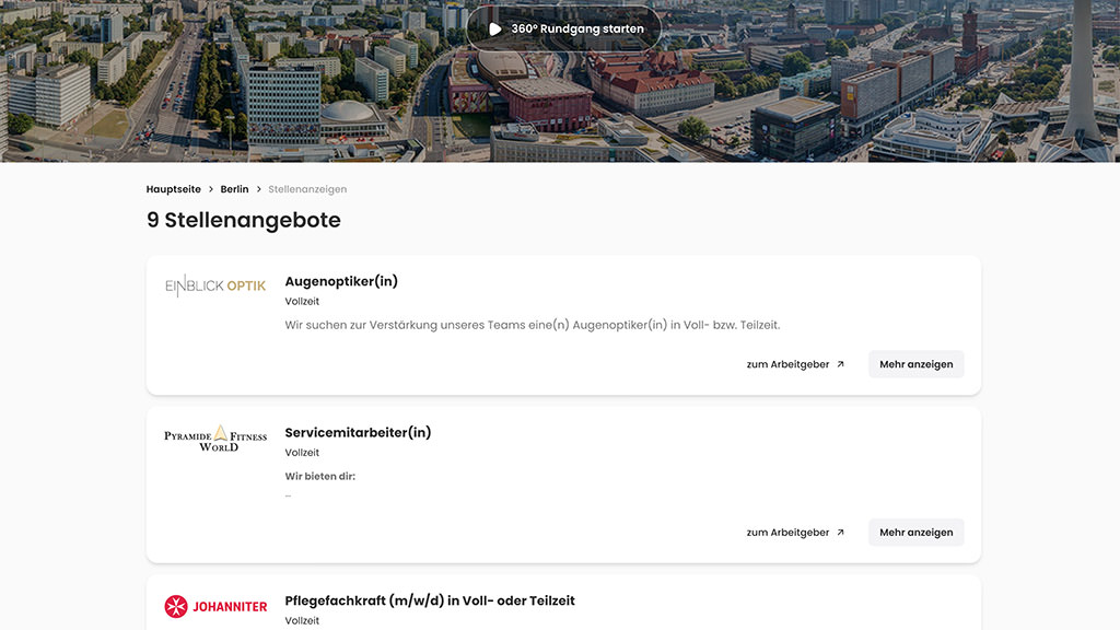 Unsere Rundgänge verbinden eindrucksvolle 360°-Ansichten mit interaktiven Points of Interest, Such- und Filterfunktionen sowie zusätzlicher Präsenz im Städteportal intocities.com – für maximale Reichweite und Sichtbarkeit.